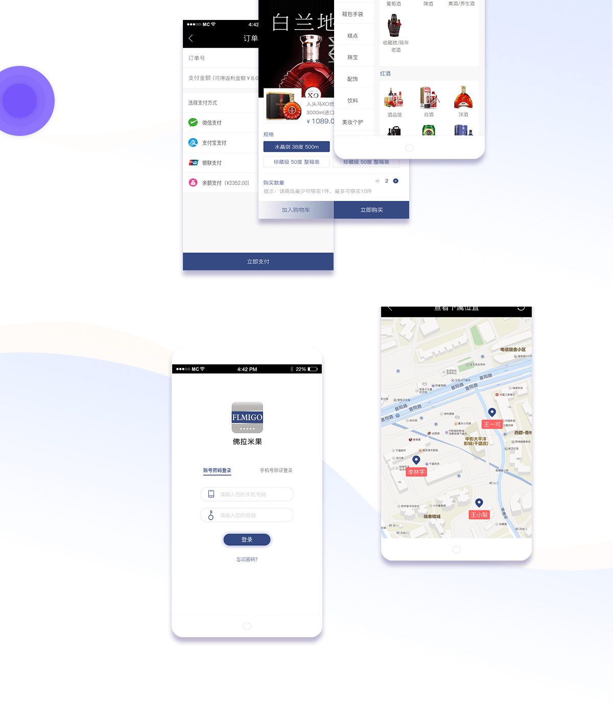 佛拉米果,是成都佛拉米果旗下新成立的一家电子商务公司,主要掌握的是酒水类上游和下游的资源,上游包括一些名酒类的经销商权限,下游包括门店的商家,本次开发主要目的是把线下的资源整合到线上统一管理,并且可扩展其他类别的业务面。