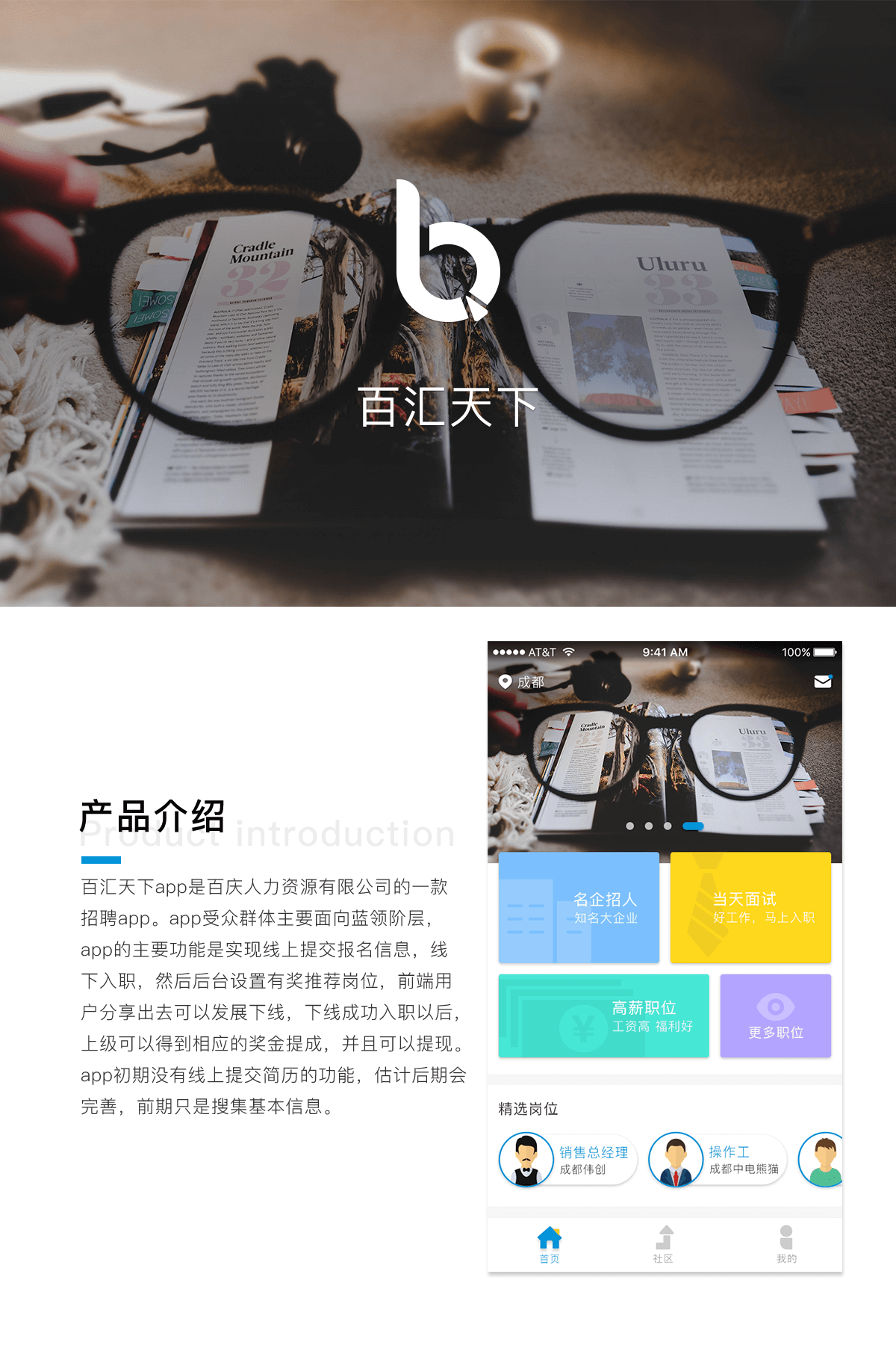 百汇天下app是百庆人力资源有限公司的一款招聘app。app受众群体主要面向蓝领阶层,app的主要功能是实现线上提交报名信息,线下入职,然后后台设置有奖推荐岗位,前端用户分享出去可以发展下线,下线成功入职以后,上级可以得到相应的奖金提成,并且可以提现。