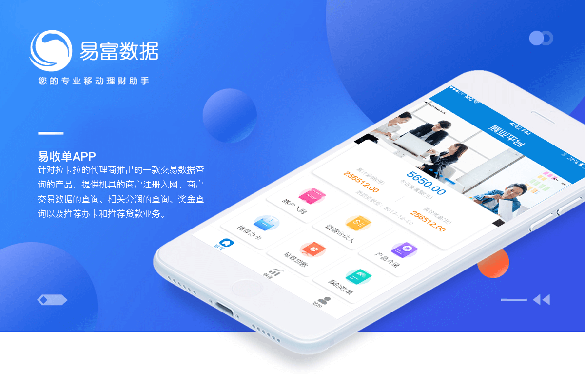 易收单APP是针对拉卡拉的代理商推出的一款交易数据查询的产品,提供机具的商户注册入网、商户交易数据的查询、相关分润的查询、奖金查询以及推荐办卡和推荐贷款业务。